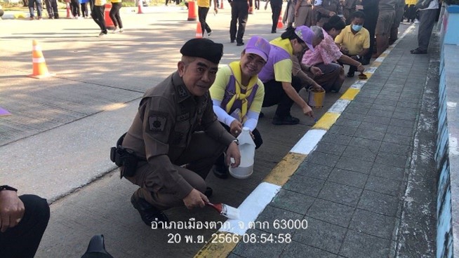 วันที่ 20 พ.ย.66 เวลา 09.00 น. พ.ต.อ.สิทธิชัย ยิ้มยวน ผกก.สภ.เมืองตาก ตำรวจจิตอาสา สภ.เมืองตาก รวม 15 นายร่วมกับ หัวหน้าส่วนราชการ เเละ ประชาชนจิตอาสา จว.ตาก รวม 200 คน ร่วมกันทาสีทางม้าลายขอบทางเท้าและทำความสะอาดบริเวณหน้าโรงเรียนอนุบาลตาก ต.น้ำรึม อ.เมืองตาก จว.ตาก โดยมีนายสมชัย กิจเจริญรุ่งโรจน์ ผู้ว่าราชการจังหวัดตาก เป็นประธาน