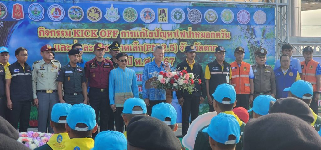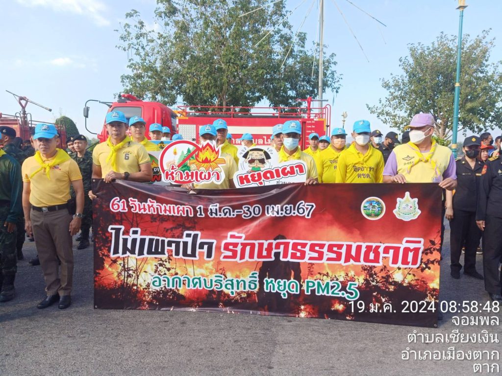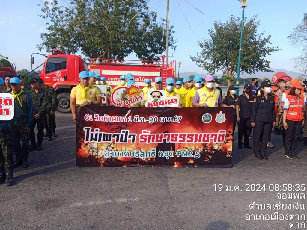 วันที่ 19 มกราคม 2567 เวลาประมาณ 09.30 น. พ.ต.อ.สิทธิชัย ยิ้มยวน ผกก.สภ.เมืองตาก ผู้แทน ผบก.ภ.จว.ตาก และหน่วยงานที่เกี่ยวข้องร่วมกิจกรรม KICK OFF การแก่ไขปัญหาหมอกควันไฟในป่าและฝุ่นละอองขนาดเล็ก ( PM 2.5 ) จังหวัดตาก ประจำปี พ.ศ. ๒๕๖๗ ณ. บริเวณอาคารกิตติคุณ อำเภอเมือง จังหวัดตาก โดยมีนายสมชัย กิจเจริญรุ่งโรจน์ ผู้ว่าราชการจังหวัดตาก เป็นประธาน