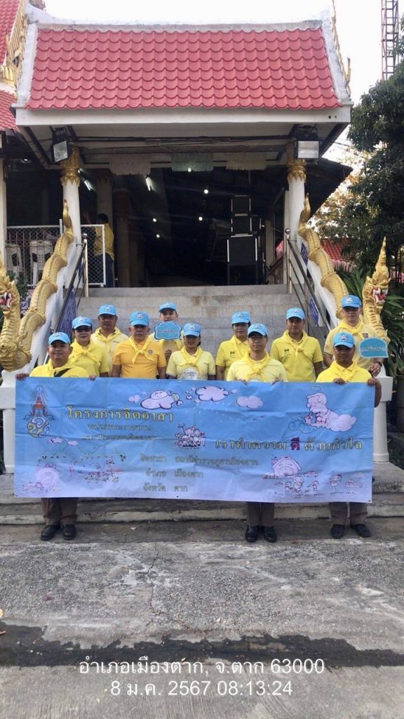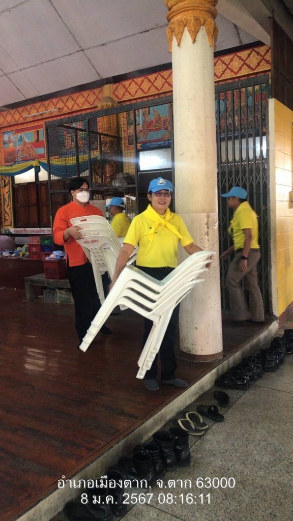 เมื่อวันที่ 8 ม.ค.67 เวลา 08.00 น. พ.ต.อ.สิทธิชัย ยิ้มยวน ผกก.สภ.เมืองตาก พร้อมด้วยข้าราชการตำรวจจิตอาสา สภ.เมืองตาก ร่วมกันพัฒนาทำความสะอาดบริเวณศาลาการเปรียญวัดมณีบรรพตวรวิหาร อ.เมือง จ.ตาก เนื่องในวันคล้ายวันประสูติสมเด็จพระเจ้าลูกเธอ เจ้าฟ้าสิริวัณณวรี นารีรัตนราชกัญญา
