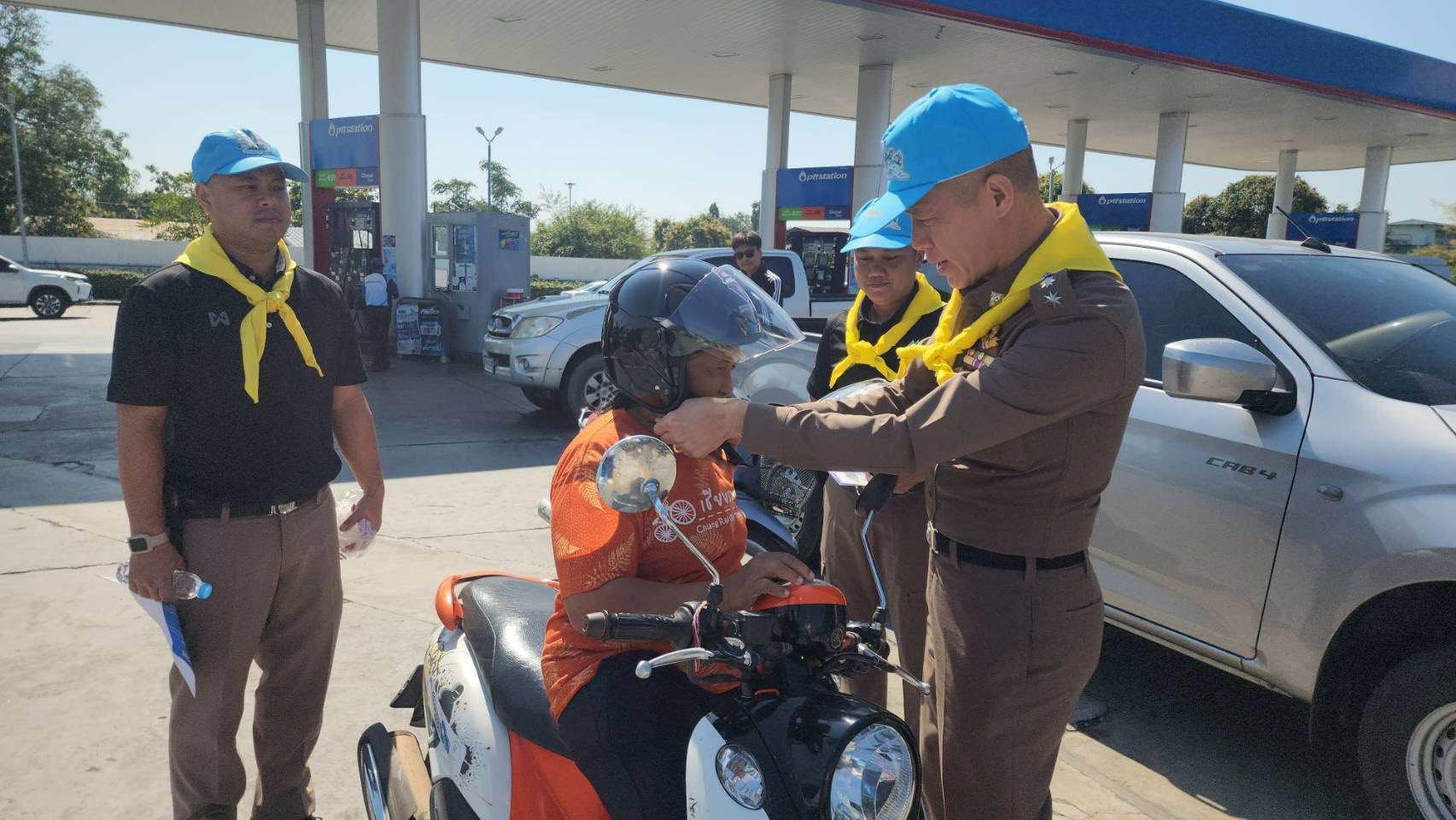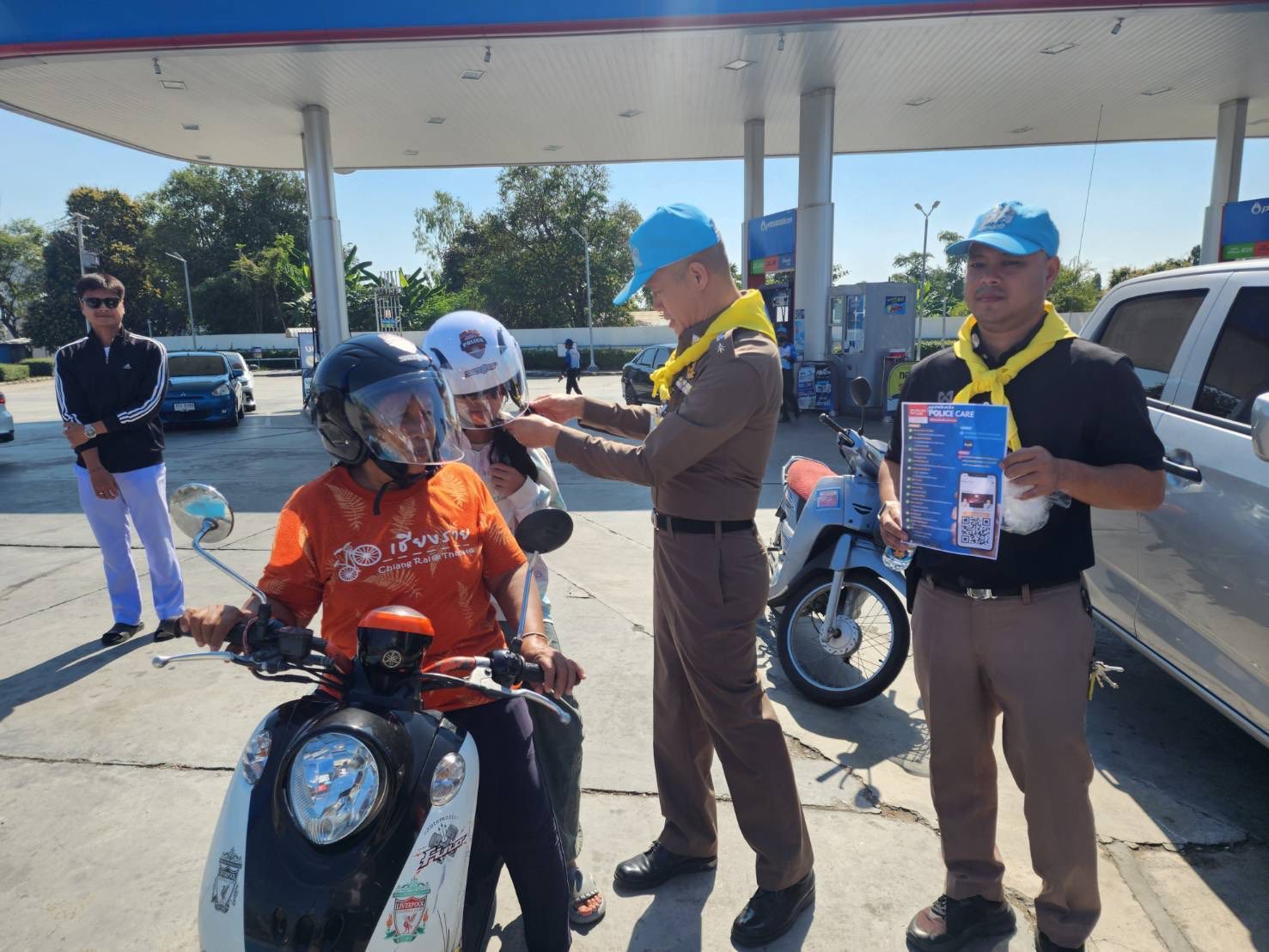 กวดขันวินัยจราจร มอบหมวกนิรภัย และประชาสัมพันธ์ แอปพลิเคชั่น Police care ให้กับประชาชน พร้อมมอบสิ่งของ พูดคุยเพื่อเป็นขวัญกำลังใจในการปฏิบัติหน้าที่