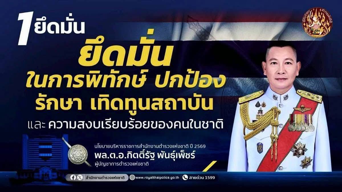 สำนักงานตำรวจแห่งชาติ ได้กำหนด นโยบายการบริหารราชการตลอดปีงบประมาณ พ.ศ.2569 ไว้เพื่อให้การปฏิบัติราชการของตำรวจเป็นไปอย่างมีระบบ ชัดเจน และเป็นรูปธรรม โดยยึดหลักจาก นโยบายเดิม 15 ข้อ ในปี 2568 และเพิ่มเติมแนวทางใหม่ที่ต้องเร่งขับเคลื่อนให้เกิดผลจริงในปีนี้ ภายใต้แนวคิด “1-6-9” ได้แก่