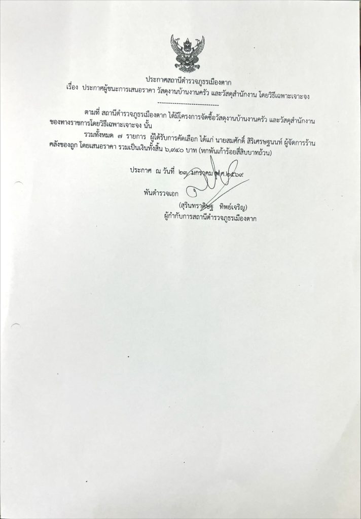 ประกาศจัดซื้อจัดจ้างประจำเดือน มกราคม 2569 1 กุมภาพันธ์ 2569 โดย admin / ข่าวจัดซื้อจัดจ้าง ประกาศผู้ชนะการเสนอราคา วัสดุงานบ้านงานครัว และวัสดุสำนักงาน โดยวิธีเฉพาะเจาะจง Facebook iconFacebookTwitter iconTwitterLINE iconLine