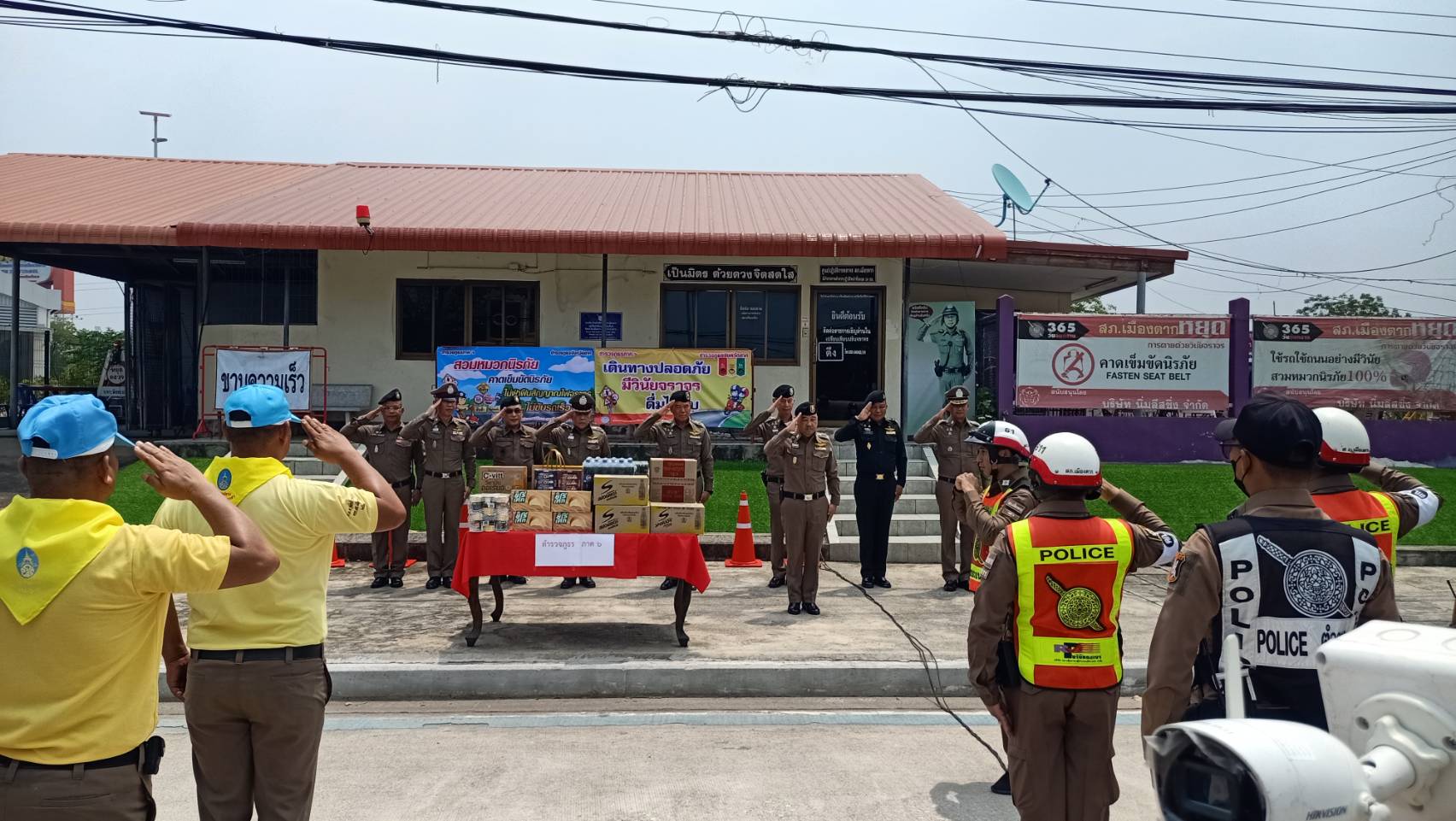 พร้อมกันนี้ ได้มอบสิ่งของเพื่อเป็นขวัญและกำลังใจ ให้แก่เจ้าหน้าที่ตำรวจผู้ปฏิบัติ