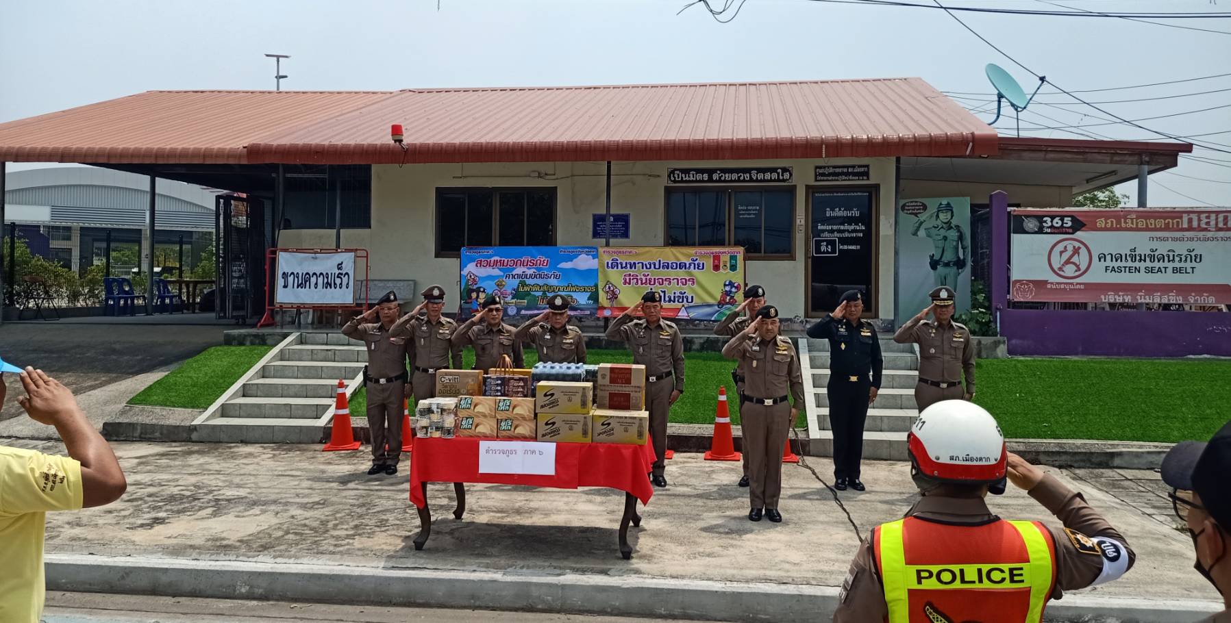 ผบช.ภ.6 ได้มาตรวจจุดบริการประชาชน และจุดบริการประชาชนจิตอาสา ช่วงเทศกาลสงกรานต์ 2567 ของ สภ.เมืองตาก บริเวณ ถนนพหลโยธิน ต.หนองหลวง อ.เมืองตาก จ.ตาก โดยมี พล.ต.ต.สัมฤิทธิ์ เอมกมล ผบก.ภ.จว.ตาก , พ.ต.อ.สถาพร รอดโพธิ์ทอง รอง ผบก.ภ.จว.ตาก , พ.ต.อ.สิทธิชัย ยิ้มยวน ผกก.สภ.เมืองตาก พร้อมคณะ ให้การต้อนรับ