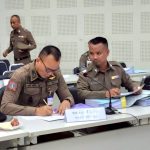 พร้อมข้าราชการตำรวจในสังกัด รอให้การ