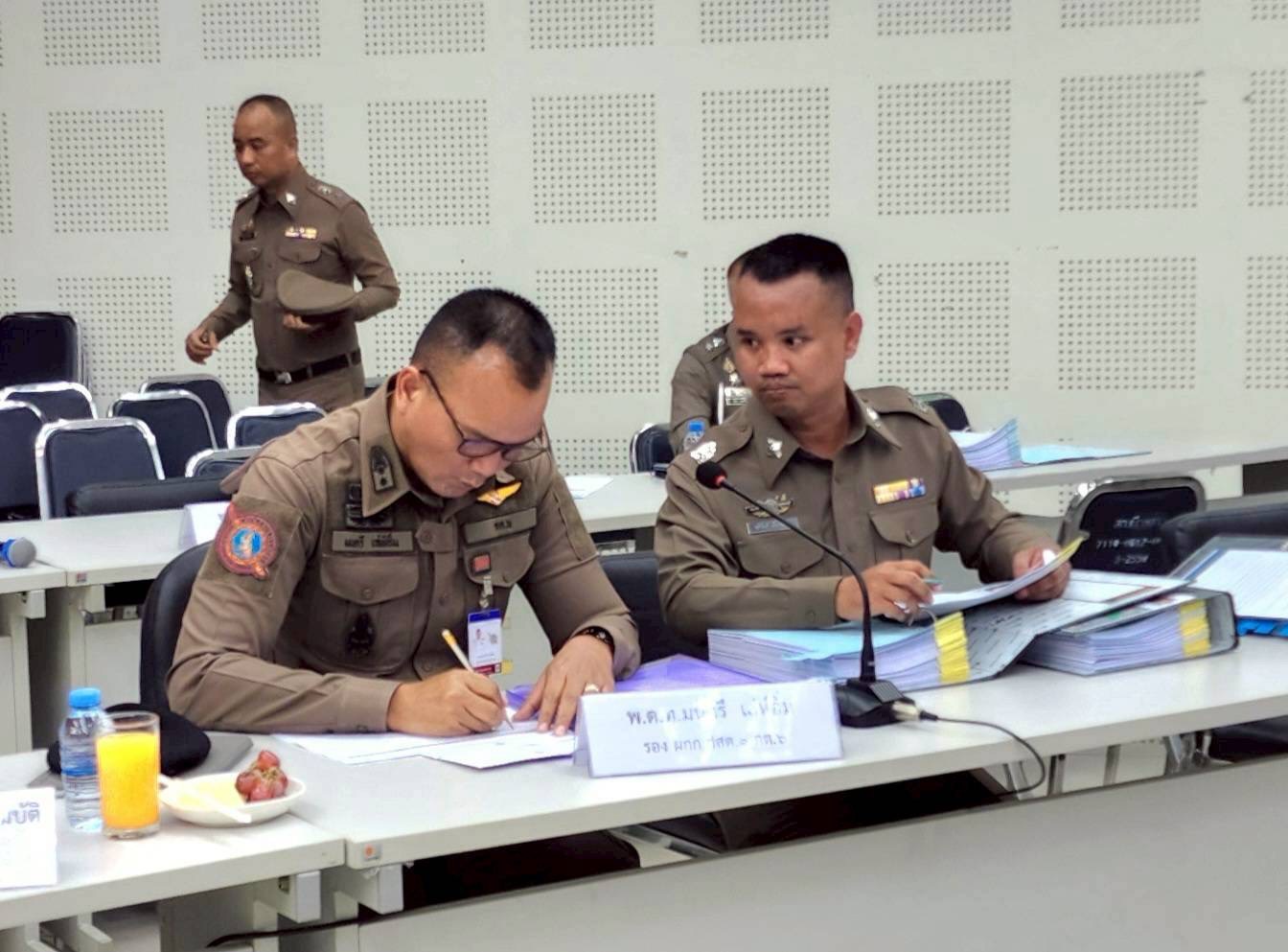 พร้อมข้าราชการตำรวจในสังกัด รอให้การ