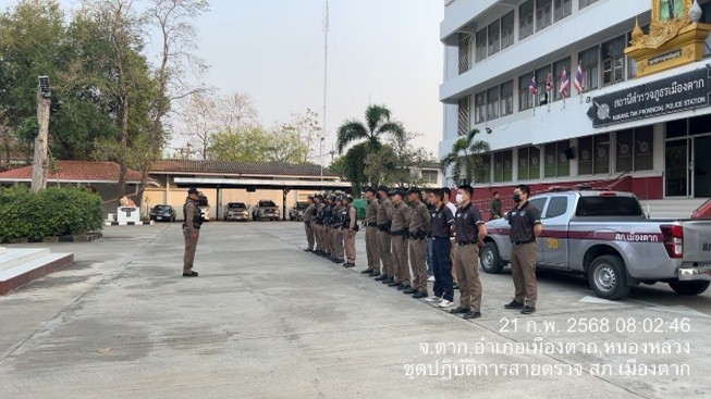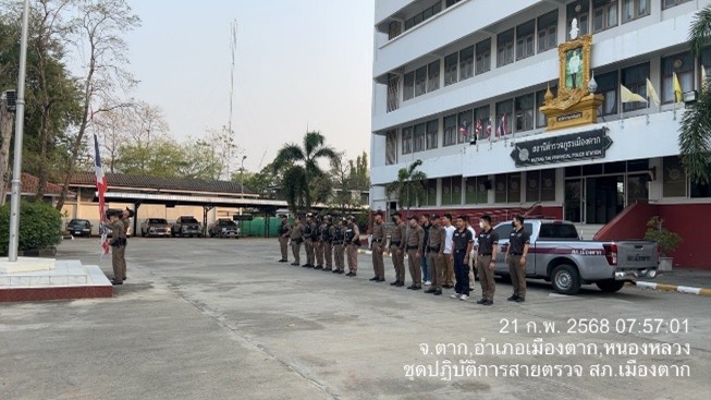 วันที่ 17 ก.พ.68 เวลาประมาณ 13.00 น. ร.ต.อ.สิริดิษฐ์ รายะ รอง สวป.สภ.เมืองตาก ปฏิบัติหน้าที่ ร้อยเวร 20 พร้อมสายตรวจรถจักรยานยนต์ชุดที่ 2 ออกตรวจธนาคาร ร้านทองในเขตพื้นที่รับผิดชอบ เพื่อป้องกันเหตุอาชญากรรมต่าง ๆ