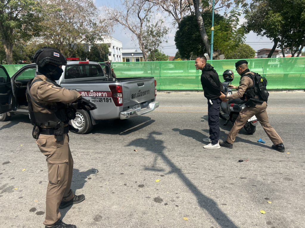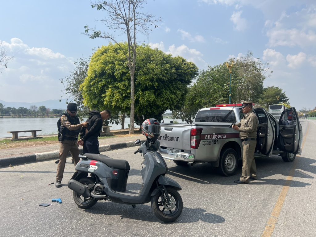 วันที่ 19 ก.พ.69 เวลา 13.45 น. สภ.เมืองตาก พ.ต.อ.สุรินทราดิษฐ ทิพย์เจริญ ผกก.สภ.เมืองตาก พร้อมด้วย พ.ต.ท.มนตรี จิตรสิริบูรณ์ รอง ผกก.สส.สภ.เมืองตาก , พ.ต.ท.ฉัตรชัย สุทธนะ รอง ผกก.ป.สภ.เมืองตาก , พ.ต.ท.สมพงษ์ ใจงาม สวป.สภ.เมือวตาก , พ.ต.ท.สุรศักดิ์ ด่อนแผ้ว สว.สส.สภ.เมืองตาก พร้อมข้าราชการตำรวจในสังกัด สภ.เมืองตาก ร้อยเวร 20 สายตรวจรถยนต์ รถจักรยานยนต์ สายตรวจประจำตำบล ร้อยเวร 30 สืบสวน จราจร พนักงานวิทยุ ธุรการป้องกันปราบปราม สภ.เมืองตาก