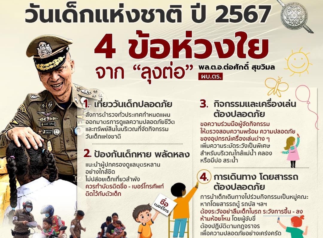 สำนักงานตำรวจแห่งชาติ พร้อมดูแลความปลอดภัย การจัดกิจกรรม“วันเด็กแห่งชาติ ประจำปี 2567” ขอความร่วมมือ